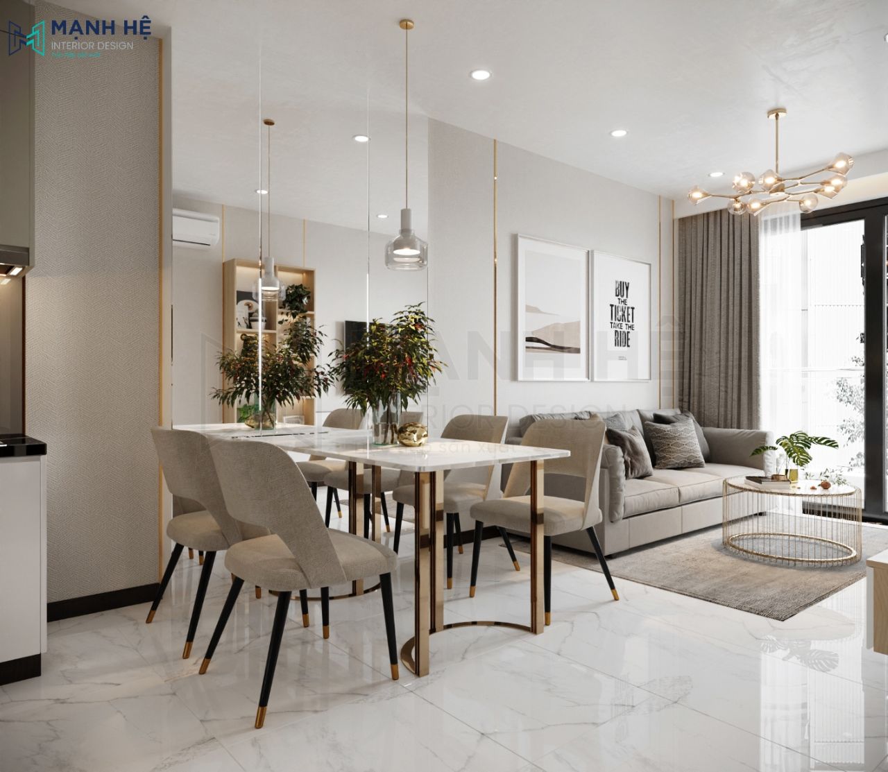 Hạng mục: Phòng khách, phòng bếp, 2 phòng ngủ
